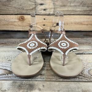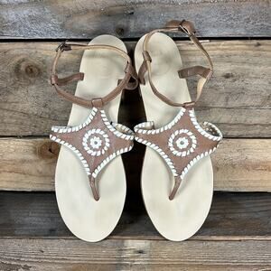 Jack Rogers Alana Maci Flat Sandals - Tan/White - 9.5