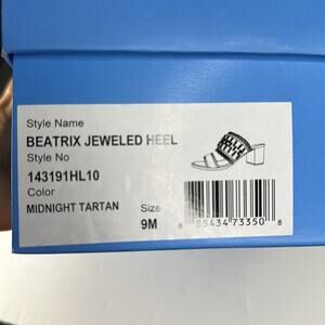 Jack Rogers Beatrix Bejeweled Plaid Block Heel Sandal Navy Green Size 9 New