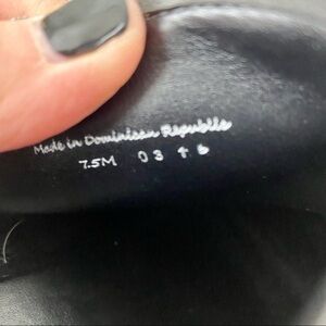 Super cute and comfortable, black almond toe perfect for professional wear, work wear, career wear. Great Jack Rogers style, scalloped edge. Minor flaws, slight crack at toe area on both shoes - see photos- barely noticeable.