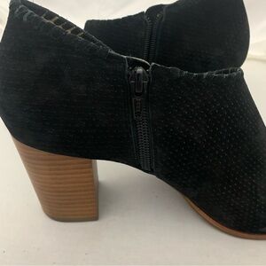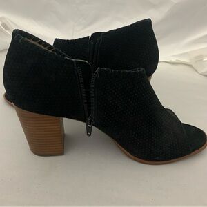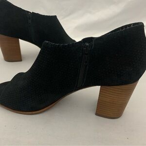 Jack Rogers Black Peep Toe Heeled Suede Side Zip Booties