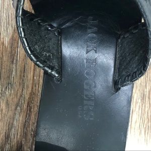 Black leather and sole Jack Rogers ‘Natural Jacks’ flat sandals. Shoes are in good used condition, shoes are pre-loved. Normal wear on the soles and leather is softened and comfortable.