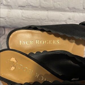 Jack Rogers Black Sueded Mules with Wooden Heel Sz 5.5