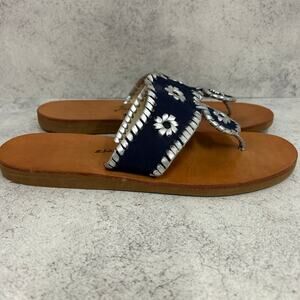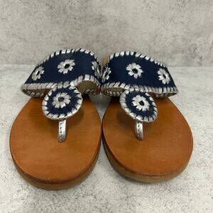 Jack Rogers Boating Jacks Flip Flops Navy Silver Preppy Canvas Leather Sandals 7