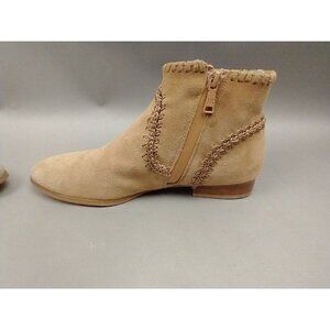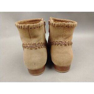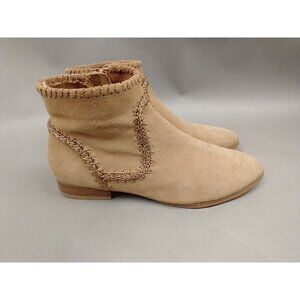 Jack Rogers Boots Womens 7 Tan Suede Embroidered Ankle Side Zip Low Heel