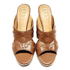 Jack Rogers Brown Leather Slide Wedge Heel Sandals Shoes Women's Size 9.5 M