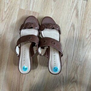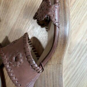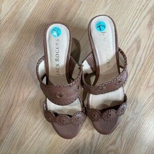 Jack Rogers Caroline Leather Wedge Sandals Women’s Size 7.5 Whipstitch Heels