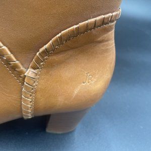 Jack Rogers Chandler Bootie Womens 7 M Oak Brown Black Heel Ankle Boot. Lightly used- there is a spot on the leather where a tag was removed shown in the pictures.