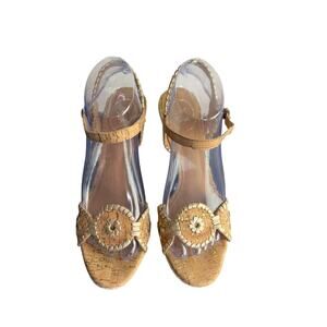 Jack Rogers Clare Cork Wedge Sandals Womens 7.5 Beige 4"Heel Adjustable Strap
