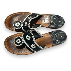 Jack Rogers Classic Whip-Stitch Palm Beach Leather Thong Sandal Black & White 8M