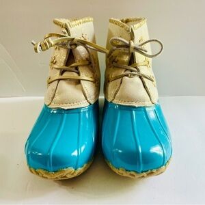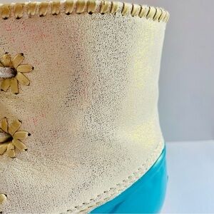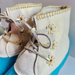 Jack Rogers Cream and Turquoise Shimmer Snow Boots Size 7