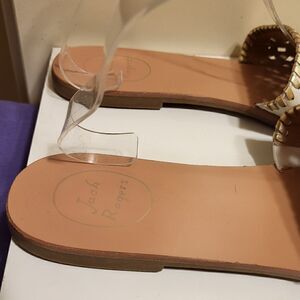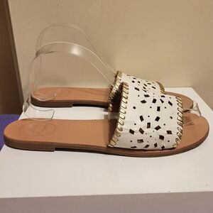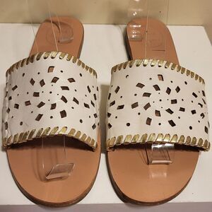 Jack Rogers "Delilah" White/Gold Perforated Leather Slide Sandals sz.10 Ret $128