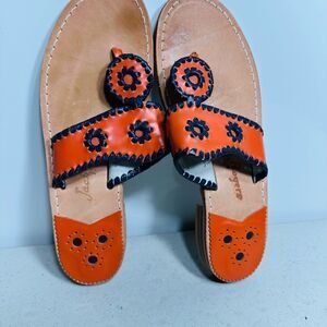 Jack Rogers Flat Orange UVA Leather Palm Beach Navajo Hampton Sandals Womens 8