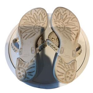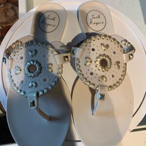 Jack Rogers Thong Sandals Handmade, White w/ Shiny Gold Stitching Women Sz 5 EU