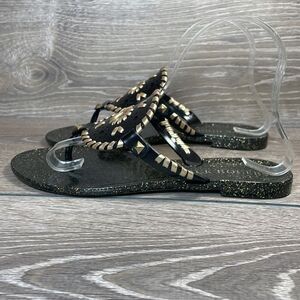 Jack Rogers Georgica Black Gold Jelly Jeweled Women’s Sz 6 Slip On Slide Sandals