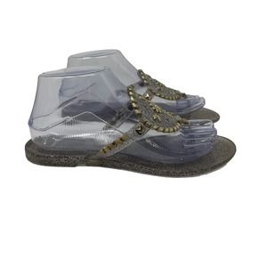 Jack Rogers Georgica Jelly Thong Sandals Silver Glitter Womens Size 7