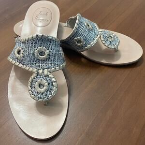 ✨ Jack Rogers Gold Leather & Tweed Sandals – Size 6.5
