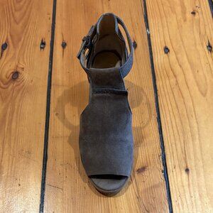 Jack Rogers Gray Taupe Suede Peep Toe Open Booties, size 7