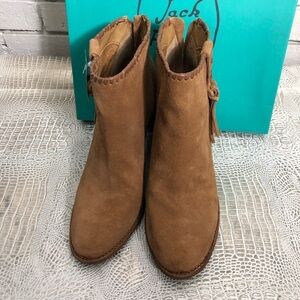 Sleek tassel details and tonal whipstitching distinguish a versatile leather bootie lifted by a bold stacked heel.