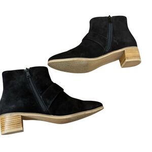 Jack Rogers Izzy Suede Buckle Low Heel Bootie Boots Black Size 6.5