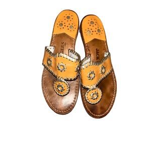 Jack Rogers Jack Flat Leather Thongs Sandals Orange Gold Women's Size 6