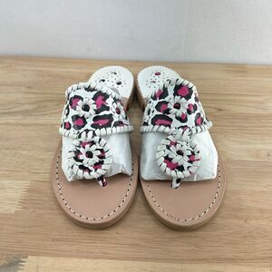 Jack Rogers Jacks Flat Sandals- Neon Pink Leopard- Size 5- NIB