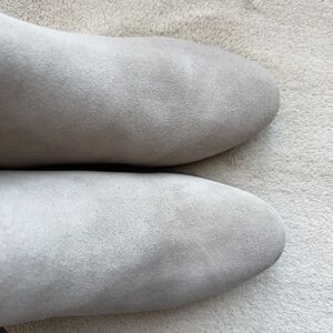Introducing the Jack Rogers Kali ankle boot booties, perfect for any occasion! This stylish bootie features a solid taupe tan gray suede upper material, with a low block heel style and a side zip closure. The almond toe shape and scalloped accents, along with the bow and logo details, add a touch of elegance to this versatile boot. These booties dont have a size tag but appear to be a US shoe size 7.5 - 8 and are suitable for women. The Jack Rogers brand is known for its quality and style, and this model is no exception. Whether you're dressing up or down, these booties will complete any outfit. Get ready for winter, fall, and spring with this must-have addition to your shoe collection!