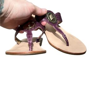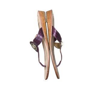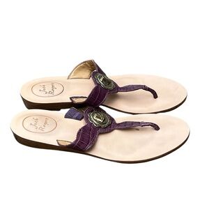 Jack Rogers Larissa purple crocodile print leather thong wedge sandals