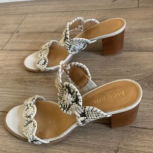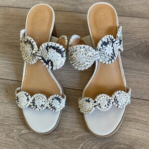Jack Rogers | Lauren Mid-Heel Snake-Print Slide Sandals | Size 8.5