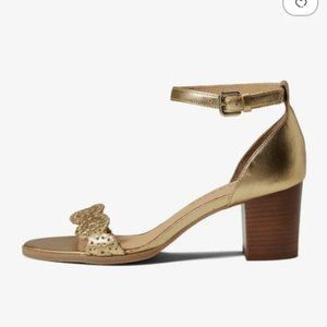 Jack Rogers Lauren ankle Strap Mid Heel Gold size 10 NWT in box