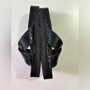 Jack Rogers Lexi Black Leather Croc Embossed Criss-Cross Slip On Sandals 7.5