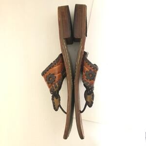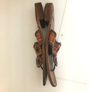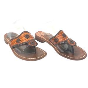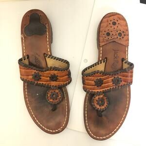 Jack Rogers Low Slide Thong Sandal Wide Whipstitch Vamp Cognac Croc Brown Tan