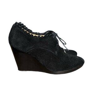 🌻 Jack Rogers "Olivia” Black Suede Wedge Booties Boots Women’s Size 8.
