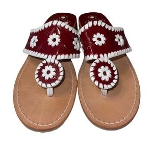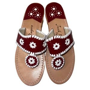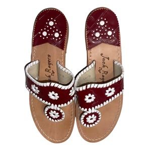 Jack Rogers Palm Beach Navajo Flat Sandals Dark Red White Women’s Size 8 Slides