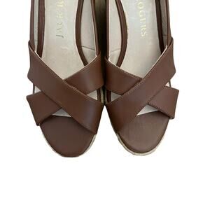 Jack Rogers Palmer Mocha brown Leather Open Toe Espadrilles 6