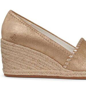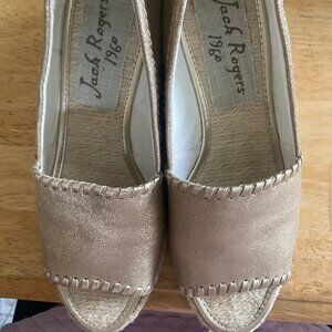 Jack Rogers Palmer Wedge Leather Open-Toe Espadrille, Gold, Size 9