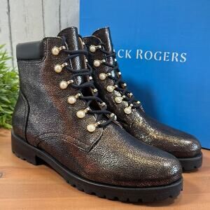 Jack Rogers Peyton Lace-Up Faux Pearl Boots Size 8