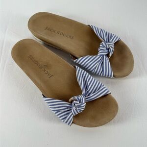 Jack Rogers Phoebe Knotted Comfort Slide Sandals in White Blue Stripe Size 8
