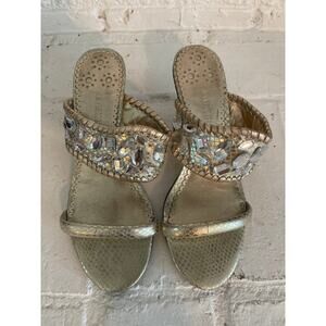 Jack Rogers Platinum Jeweled Kitten Heel Sandal Women's Size 6.5