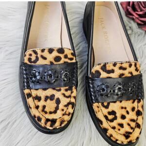 Jack Rogers Remy Calf Hair Leopard Print Loafers Black Leather SlipOn Flats 5.5B