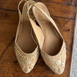 Great condition, only visible wear is on the soles. Cork and gold slingbacks