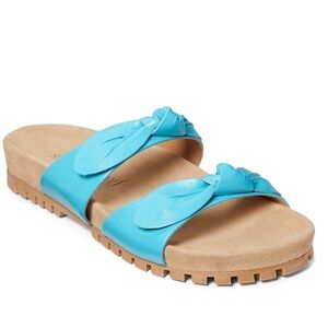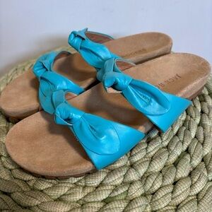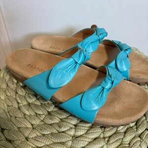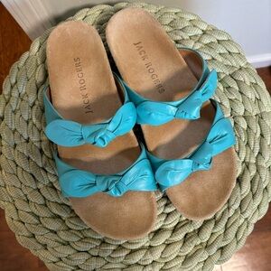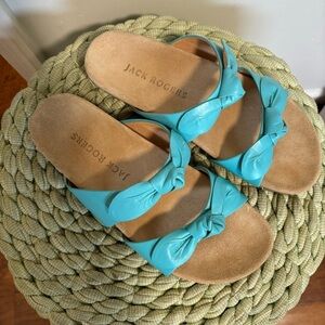 Jack Rogers Rose Aqua Blue Leather Double Knot Slide Flat Sandals