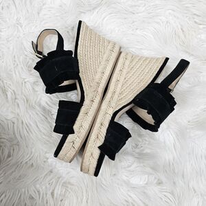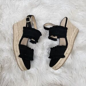 Jack Rogers Rosie Ruffle Wedge In Black Suede Women's Size 8M Espadrille