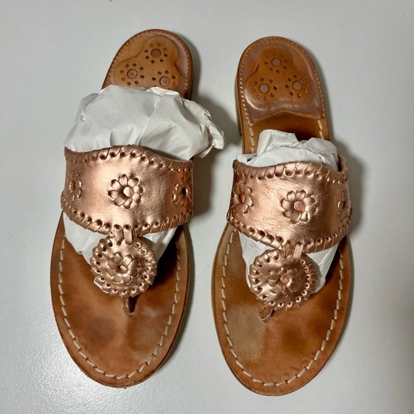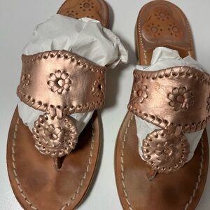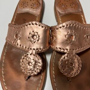 EUC. Metallic rose gold leather slip on sandals with leather inner soles and non slip outer sole.