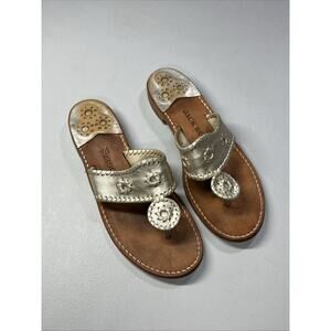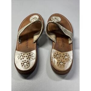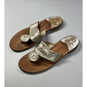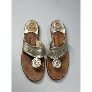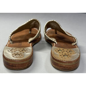 Jack Rogers Sandals Gold Leather Medallion Womens 9 M Whipstitch Thong Slip On