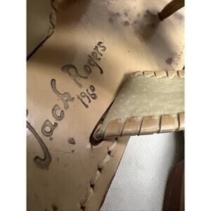 Jack Rogers Sandals Metallic Silver Brown Thong Slip On Leather Size 6