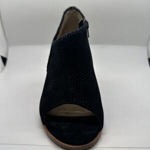 Jack Rogers Size 10 M Black Suede Peep Toe Booties Side Zip Stacked Heel Shoes
