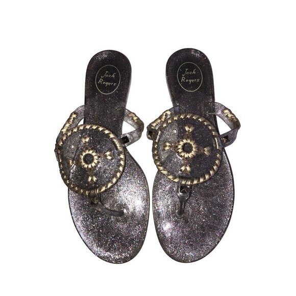 Jack Rogers Size 9 Sandals Jelly Thong Clear Glitter Medallion Gold Summer Beach Spring Vacation Vacay Resort