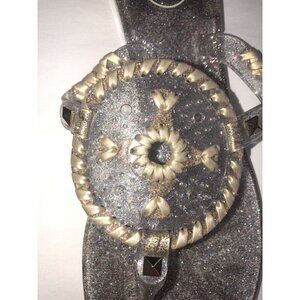 Jack Rogers Size 9 Sandals Jelly Thong Clear Glitter Medallion Gold Summer Beach
