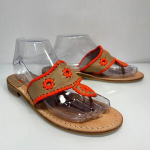 Jack Rogers Tan Orange Leather Thong Sandals Size 8