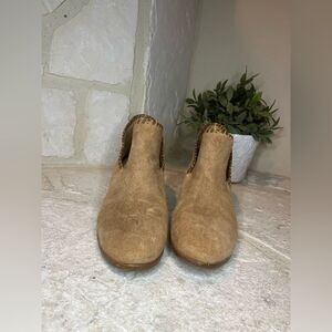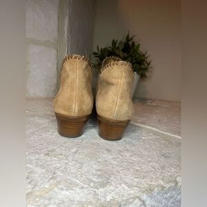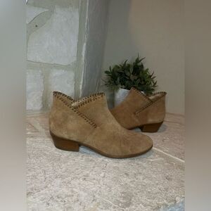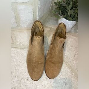 Jack Rogers Tan Suede Ankle Booties Low Heel Slip On Boots sz 9.5 M
